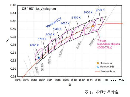 目前大多數(shù)封裝廠均是采用美國能源之星的固態(tài)照明色度分檔標(biāo)準(zhǔn),能源之星的標(biāo)準(zhǔn),主要是針對(duì)LED色區(qū)劃分方面給出了標(biāo)準(zhǔn),其標(biāo)準(zhǔn)是依據(jù)LED特性劃分。而ERP指令是根據(jù)照明技術(shù)要求,對(duì)LED提出嚴(yán)格技術(shù)指標(biāo)要求。所以ERP指令更加符合照明行業(yè)使用,有望取代能源之星的標(biāo)準(zhǔn),成為未來LED照明的主流標(biāo)準(zhǔn)。