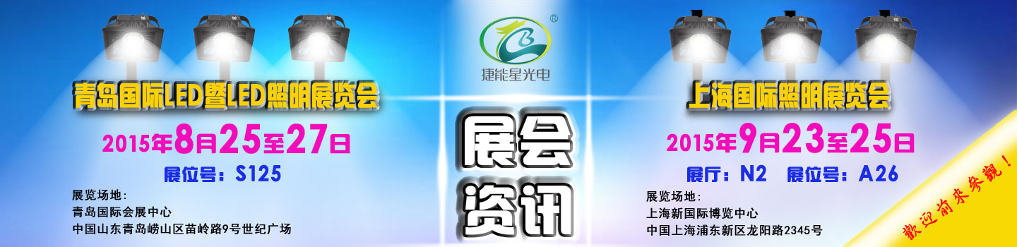捷能星光電受邀參加8月份“2015第十屆中國(青島)國際LED暨LED照明展覽會”與9月份“上海國際照明展覽會,屆時本公司將帶最新LED工礦燈/LED塔吊燈/LED泛光燈等各類LED產品參與展覽,歡迎前來參觀,期待您的光臨! 展會聯系人: 匡生 135 3017 3903 QQ:2355585661 劉生183 1881 7446 QQ:2355585685 李生 135 3769 5255 QQ:2355923883