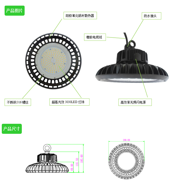 3、散熱體表面進(jìn)行陽極氧化防腐處理,接線盒內(nèi)置防雷器,采用防水膠條,防水接頭,防水、防塵性能佳,反光罩加高光透鏡專業(yè)